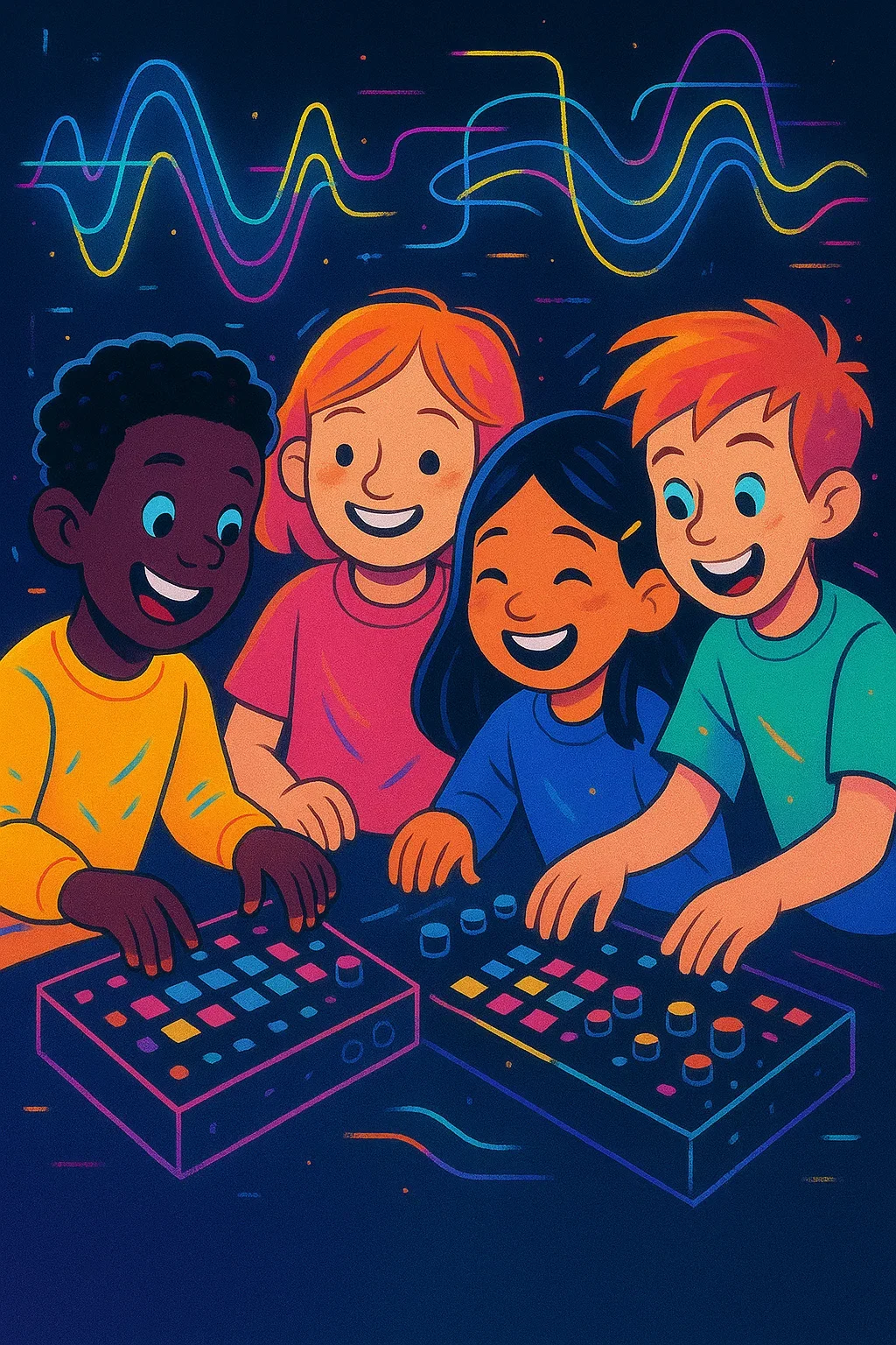 Colorful, intuitive electronic controllers designed to minimize screen time and spark creativity. A unique way to discover the joy of musical composition.